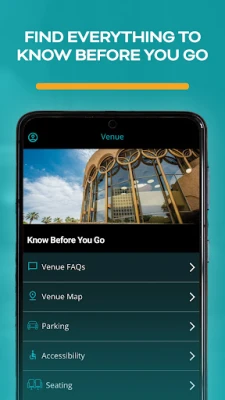 App Features: -View All Events - Directions - Parking - Pre-show Dining - Know Before You Go - News - Connect with Us - Tickets: Access your tickets, Season Subscriptions, President's Club and group tickets - Center Info - Seating Chart - Accessible Viewing.