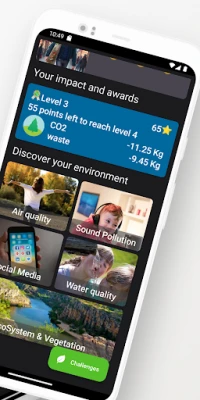 *Empowering Challenges: Immerse yourself in a world of environmental challenges, meticulously designed to inspire positive change. As you conquer each challenge, you earn valuable points and advance through various levels, turning sustainability into an exciting adventure.