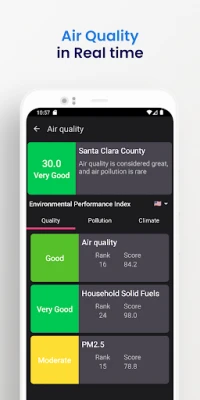 *Real-Time Air Quality Insights: Gain immediate access to the air quality data in your city and country. With a quick tap, you can stay informed about air pollution levels, allowing you to make informed decisions to safeguard your health and the well-being of your community.