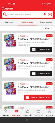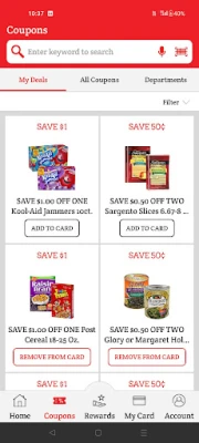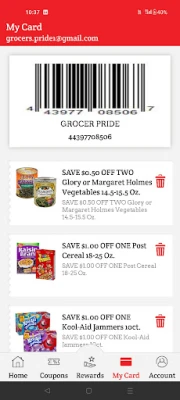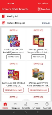 Grocer’s Pride Rewards app is the easiest way our customers can receive savings every time they shop! Simply browse the coupons available, “Add to Card” the one’s you want, and scan your phone at checkout.