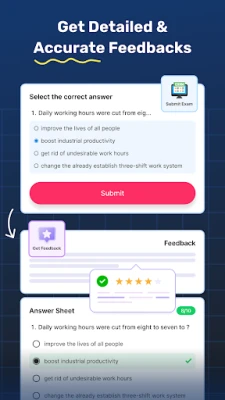 The app features a clean, easy-to-use design that lets you focus on what matters most—preparing for the exam. Smart reminders and personalized notifications will help you stay on track with your IELTS preparation.