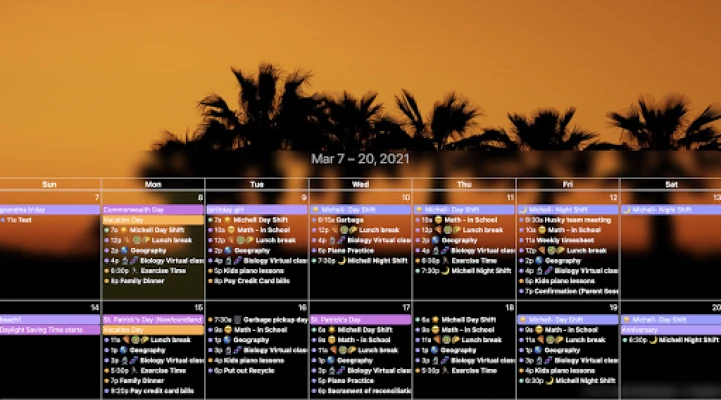 Mango Display is a modern digital calendar display. It supports calendar syncing with all major calendar services. Choose a List style to see the upcoming events, or display your events on a weekly or monthly calendar. Mango Display makes a perfect digital calendar display for busy families.
