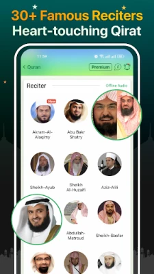 ● World famous Quran reciters (Sheikh Abdul Basit, Sheikh As Sudays & As Shraym, Mishari Rashid, Saad Al Ghamdi, Abu Bakr Shatry, Sheikh Ahmed Ajmi, Sheikh Al-Huzaifi, Sheikh Mahir-al-Muayqali, Sheikh Minshawi, Sheikh Ayub, Khalil Husari, Mahmood AlBana, Salah Bukhatir & Sheikh Basfar).