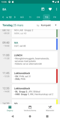 Skolschema är appen för dig som är trött på att behöva gå in på webbläsaren och navigera till schemasidan varje gång du vill kolla schemat; här är det bara att öppna appen så dyker ditt schema upp. Du kan enkelt växla vecka via flikmenyn, och till och med se vad det är till lunch om det stöds för din skola.