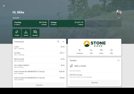 Stone Bank is here to help you reach your next financial milestone. It’s fast, secure, and empowers you with the tools you need to manage your finances.