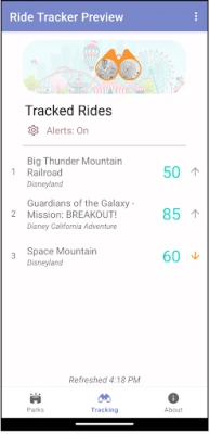 Ride Tracker is a no-nonsense app that monitors your favorite theme park rides and alerts you when wait time shortens. Use as a companion app to the theme park's own app. Be the first to know wait times shorten!